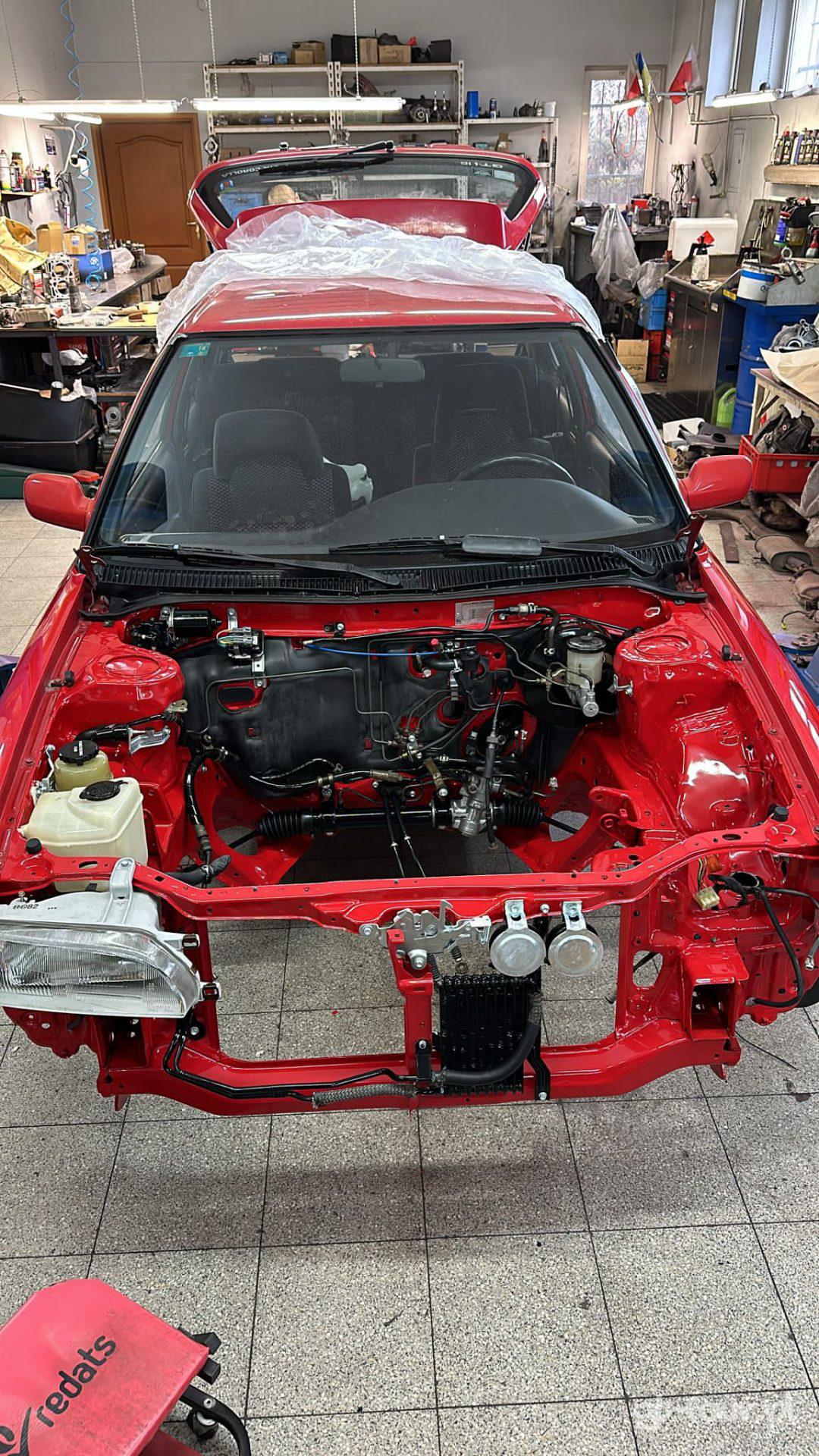 Dodatkowo zajęliśmy się renowacją silnika – nie tylko pod kątem mechanicznym, ale także wizualnym. Wymieniono wszystkie gumowe elementy, uszczelki i na nowo poskładano silnik zgodnie ze sztuką. Ponadto zadbaliśmy o wizualny aspekt kultowego 4AGE, odnawiając wszystkie jego elementy albo poprzez galwanizację, albo poprzez lakierowanie proszkowe.