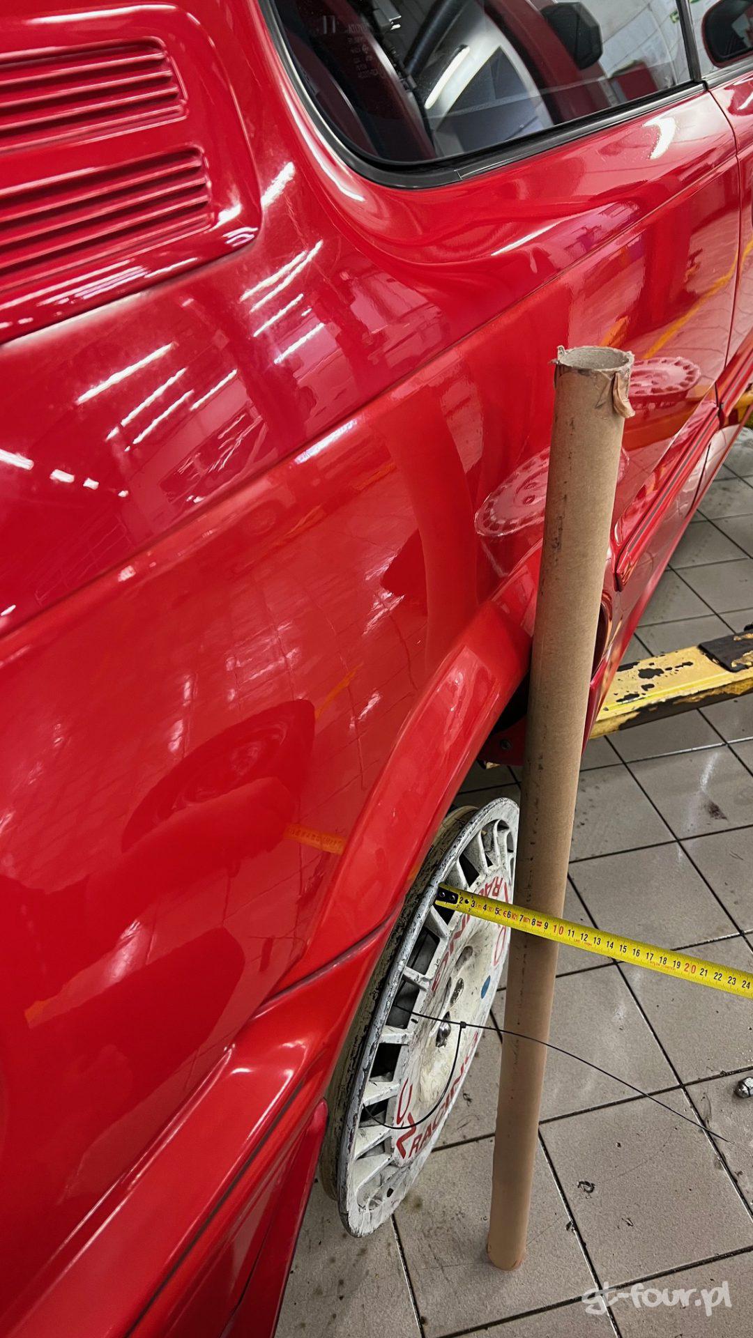 Aktualnie auto znajduje się u lakiernika i czeka na nowy lakier na całym nadwoziu.