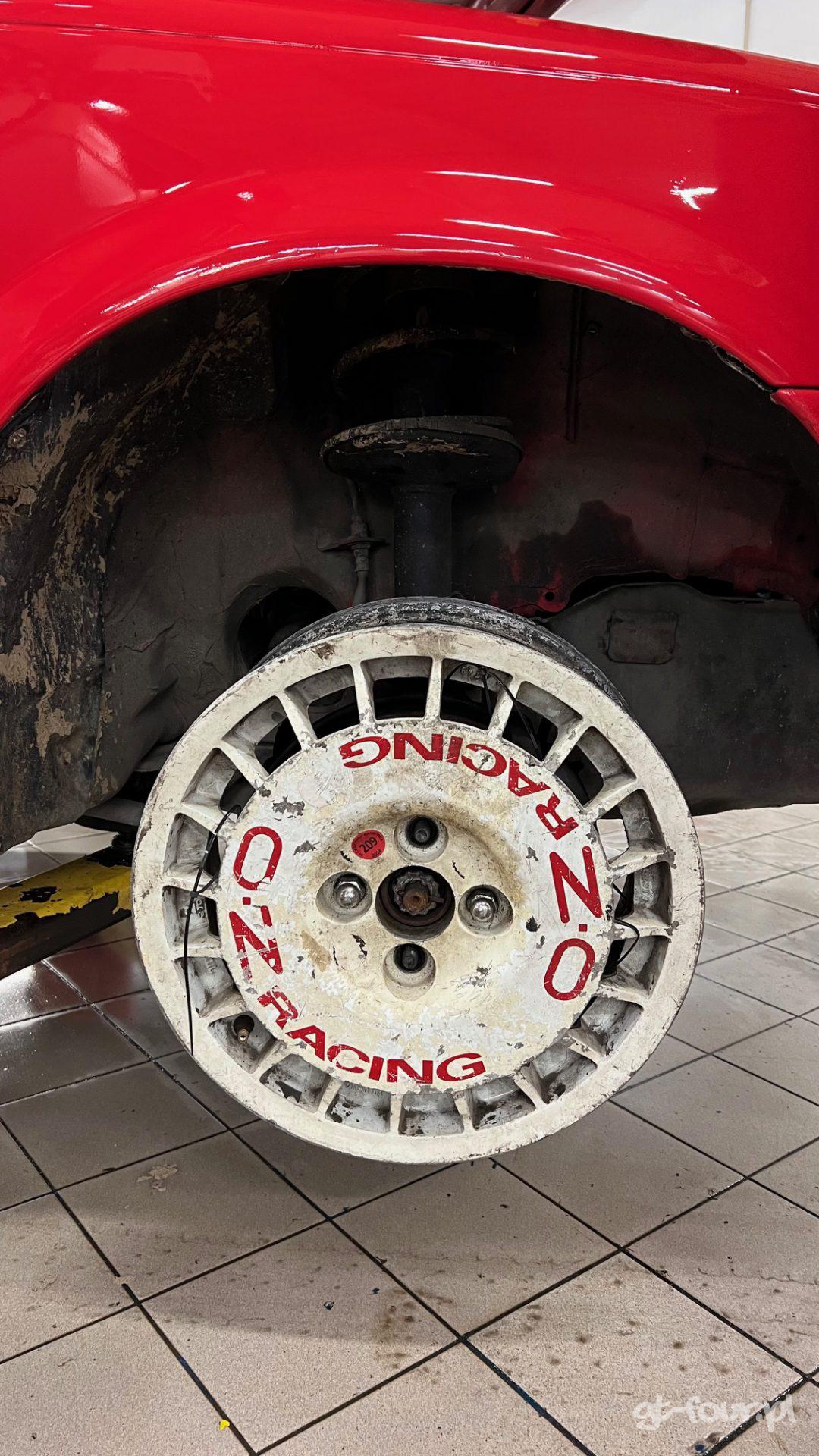 Drugą zmianą będą już standardowe modyfikacje, które widzieliście już w naszych autach – delikatne obniżenie zawieszenia oraz felgi OZ Racing. Felgi będą oczywiście białe, ale model który planujemy wsadzić do tego auta to kultowe w latach 80-90’tych – OZ Ruote. Czekają na zakończenie remontu tego auta już dobrych kilka lat. W międzyczasie przeszły kompleksową renowację, napisy OZ Racing zostały odnowione – polakierowane, a nie naklejone!