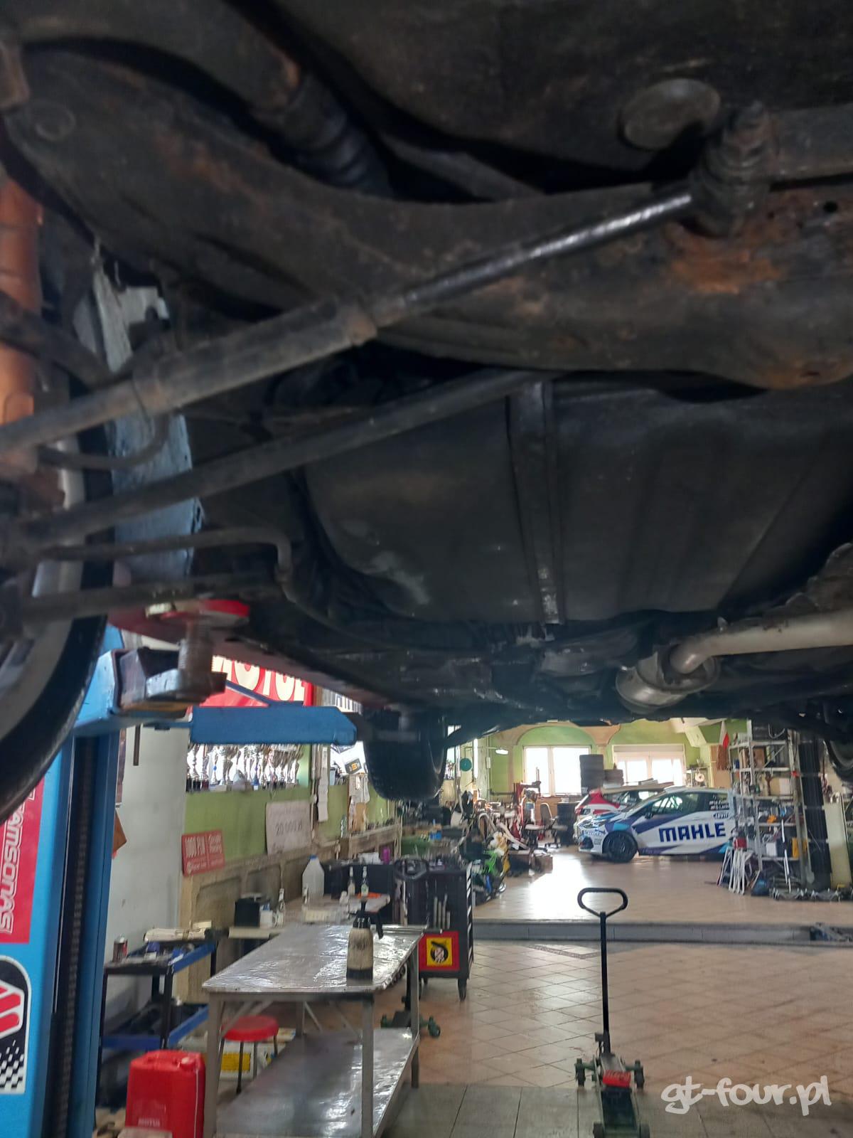 Początek przy naszych projektach zawsze zaczynamy od spodu auta. Najpierw trzeba doprowadzić dół do porządku, później elementy zawieszenia, komorę silnika i sam silnik. Lakier na nadwoziu oraz dodatki i wnętrze zostawiamy na koniec, bo to już same przyjemne i lekkie prace.