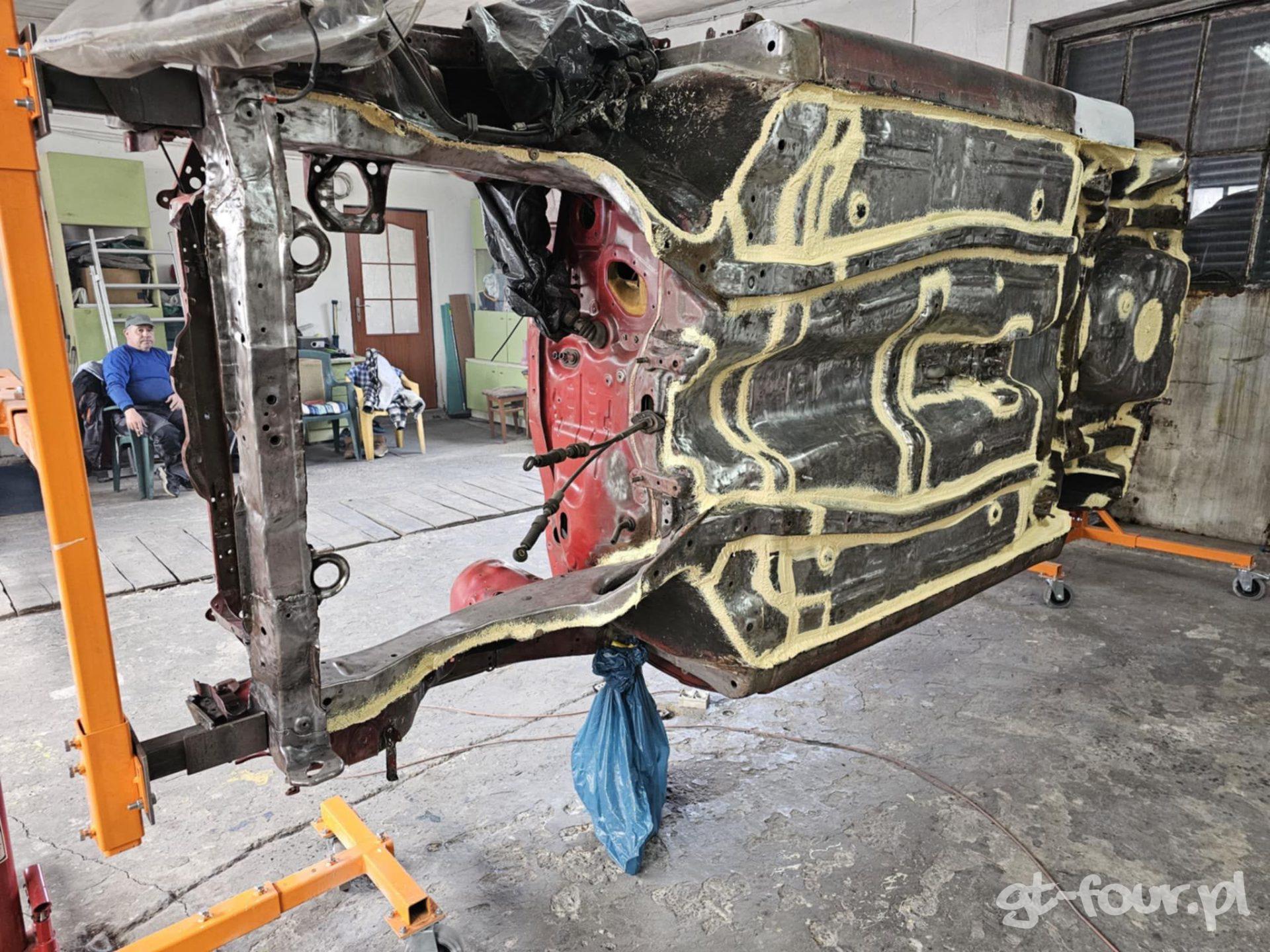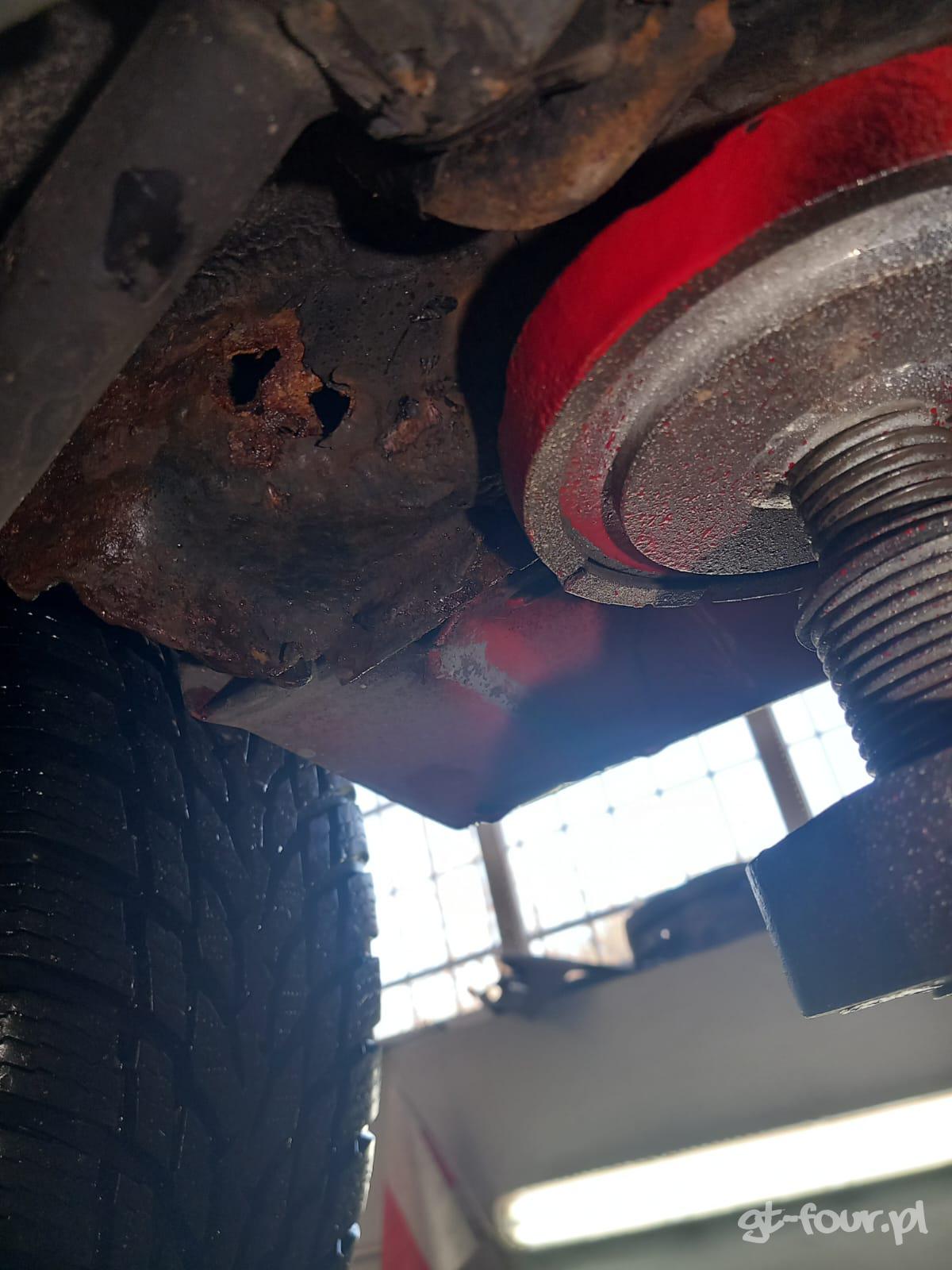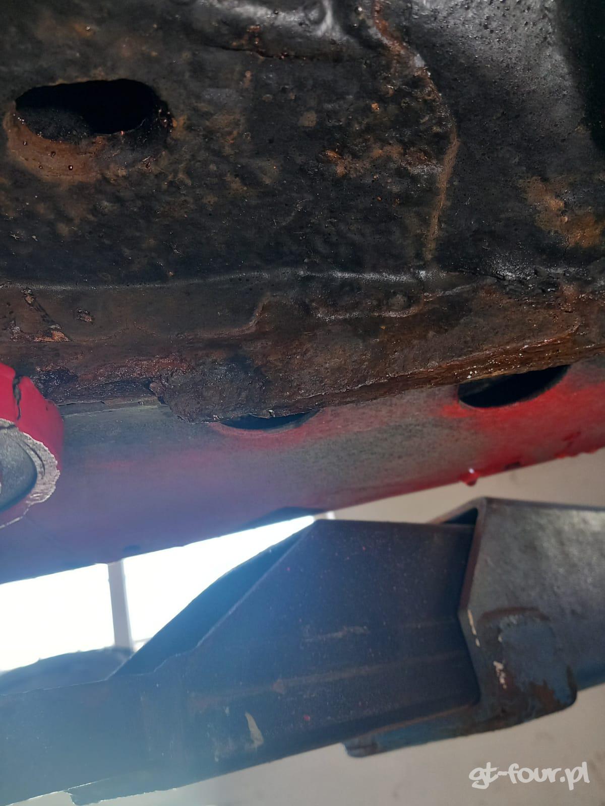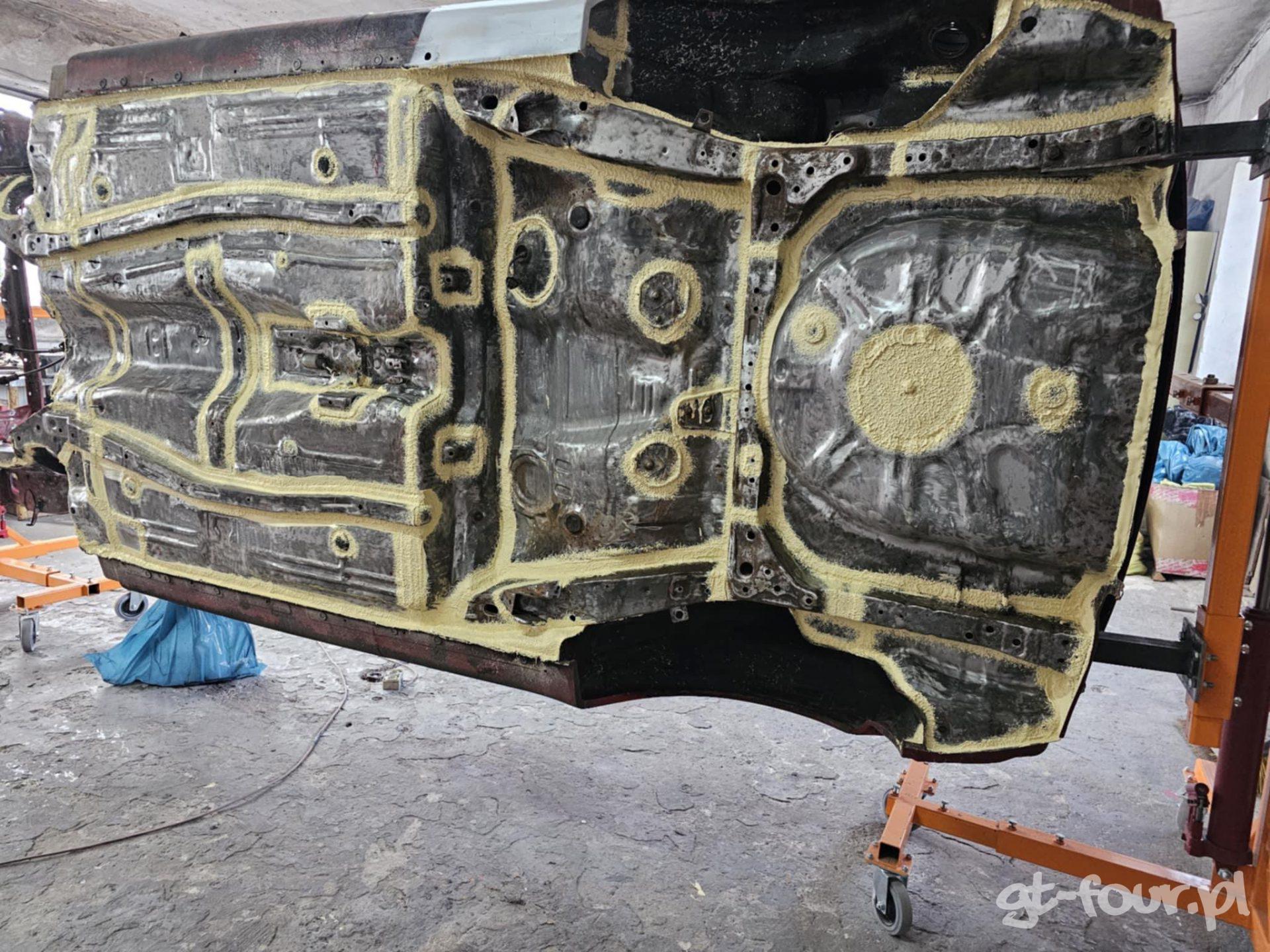 Całe podwozie zostało dokładnie oczyszczone, naprawione zostały wszystkie ogniska rdzy i dziury, a następnie położony został podkład epoksydowy, nowe mastyki, a na końcu lakier strukturalny który zabezpieczył antykorozyjnie całe podwozie.