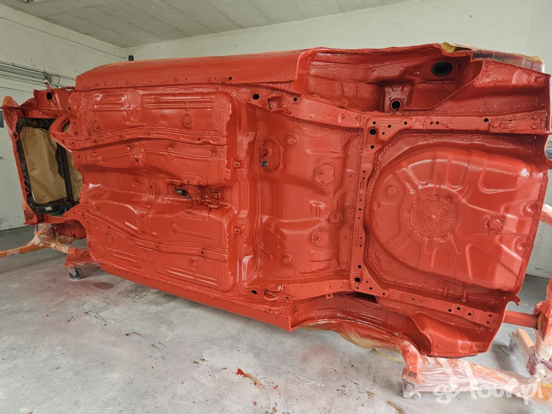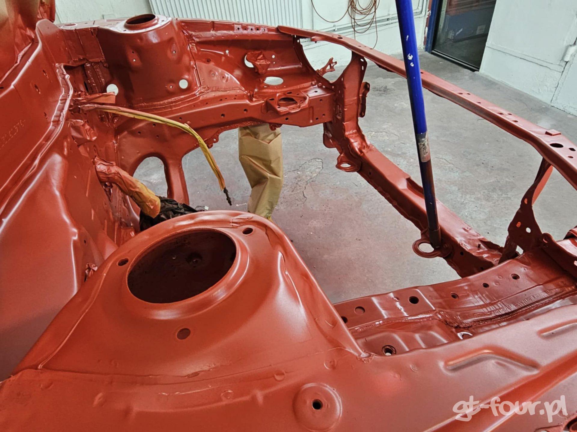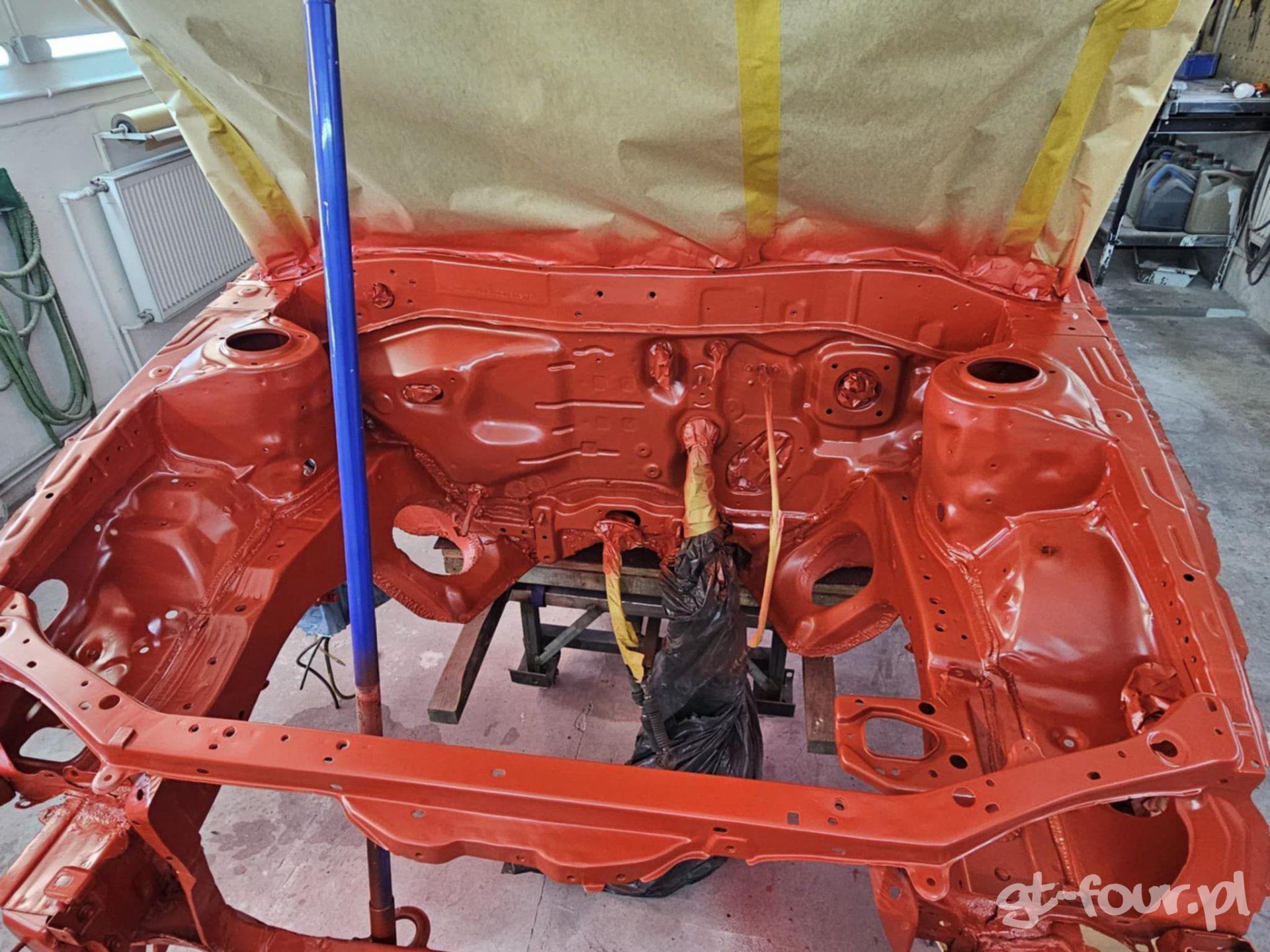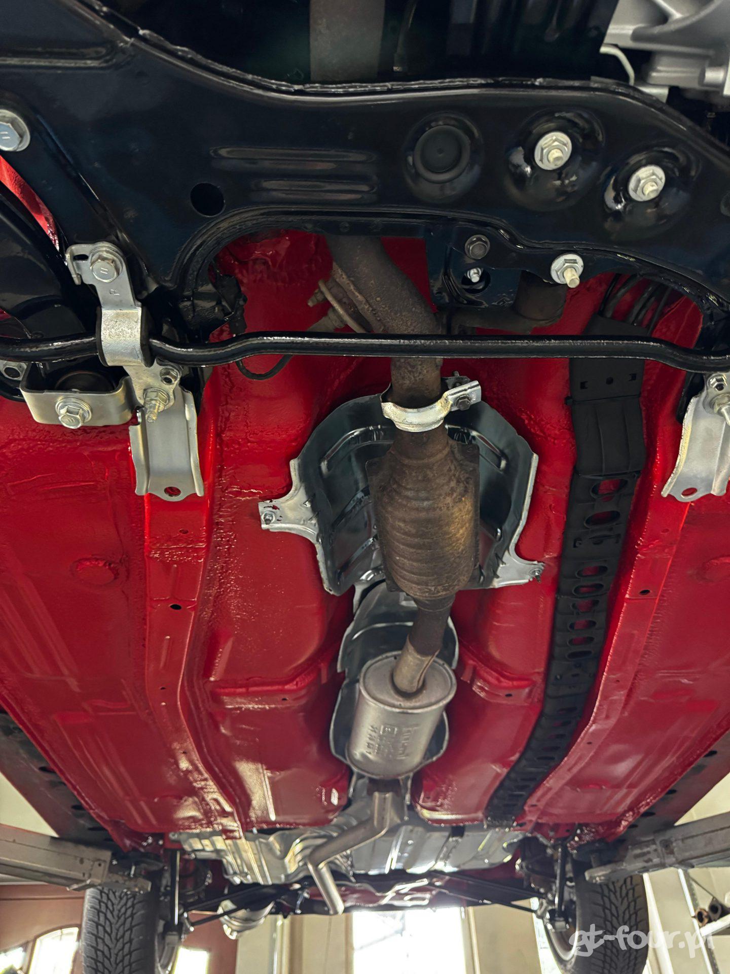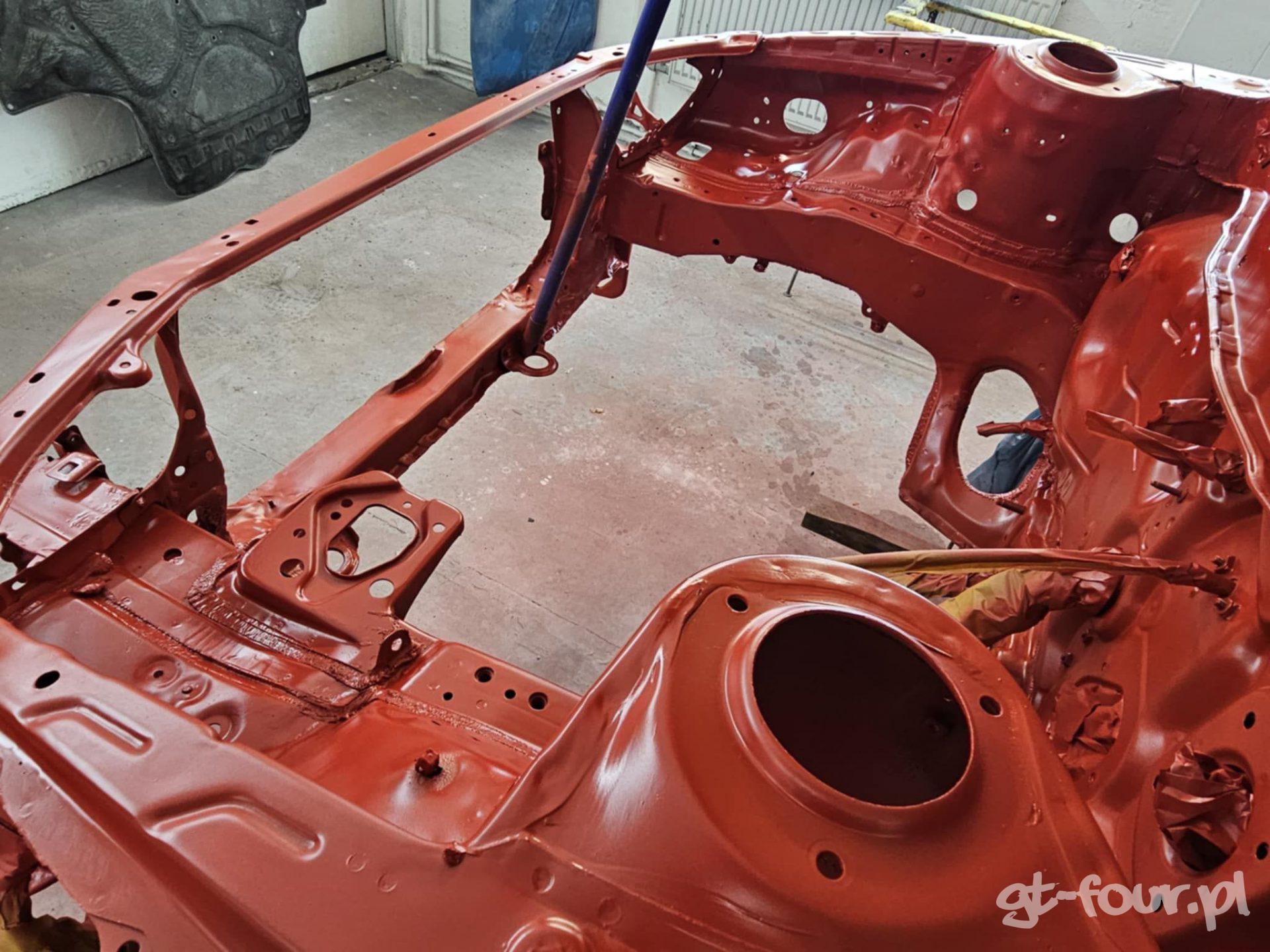 Całe podwozie zostało dokładnie oczyszczone, naprawione zostały wszystkie ogniska rdzy i dziury, a następnie położony został podkład epoksydowy, nowe mastyki, a na końcu lakier strukturalny który zabezpieczył antykorozyjnie całe podwozie.