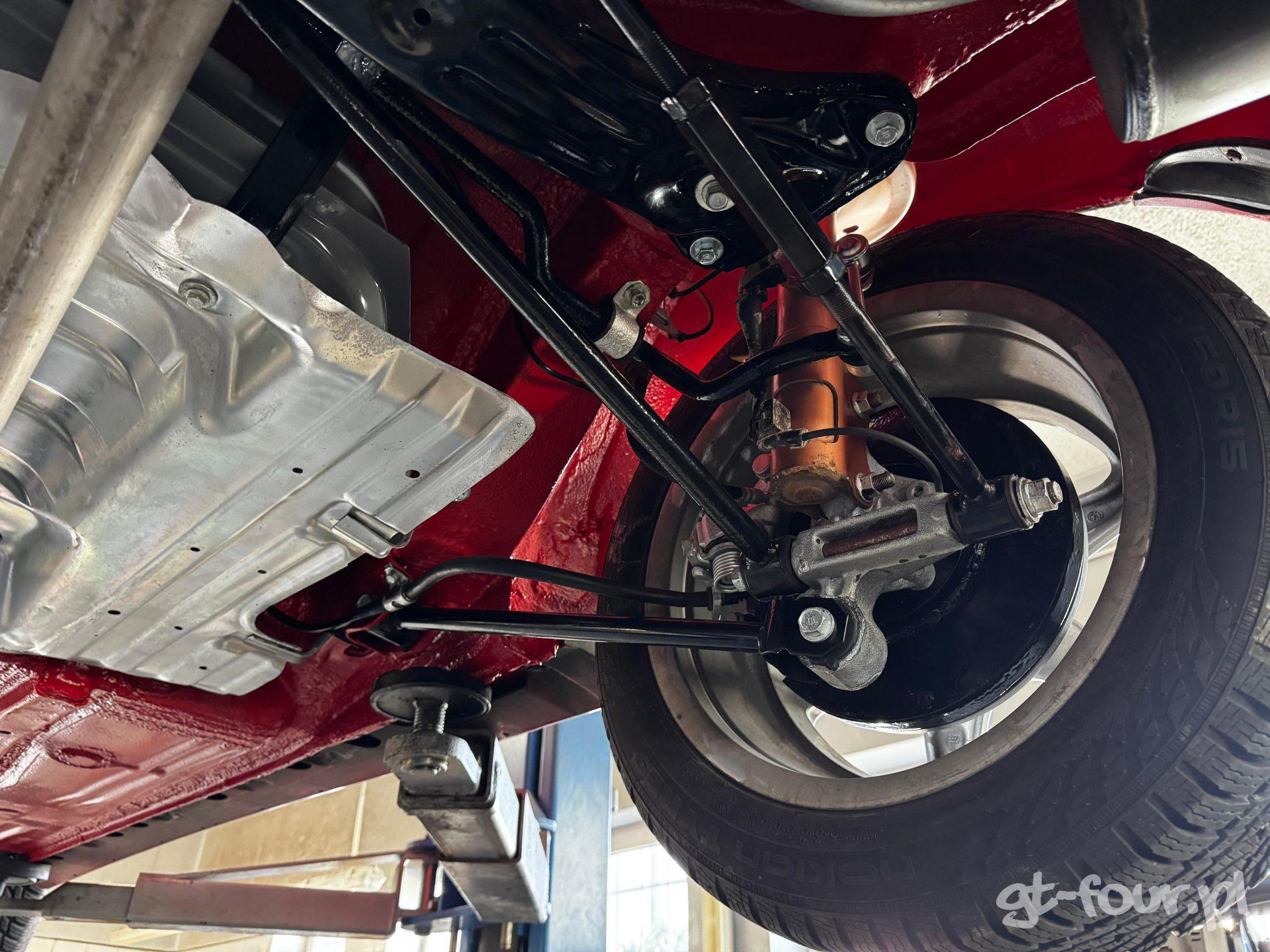 Elementy zawieszenia przeszły również gruntowną renowację – zostały wypiaskowane i polakierowane proszkowo na czarny kolor.