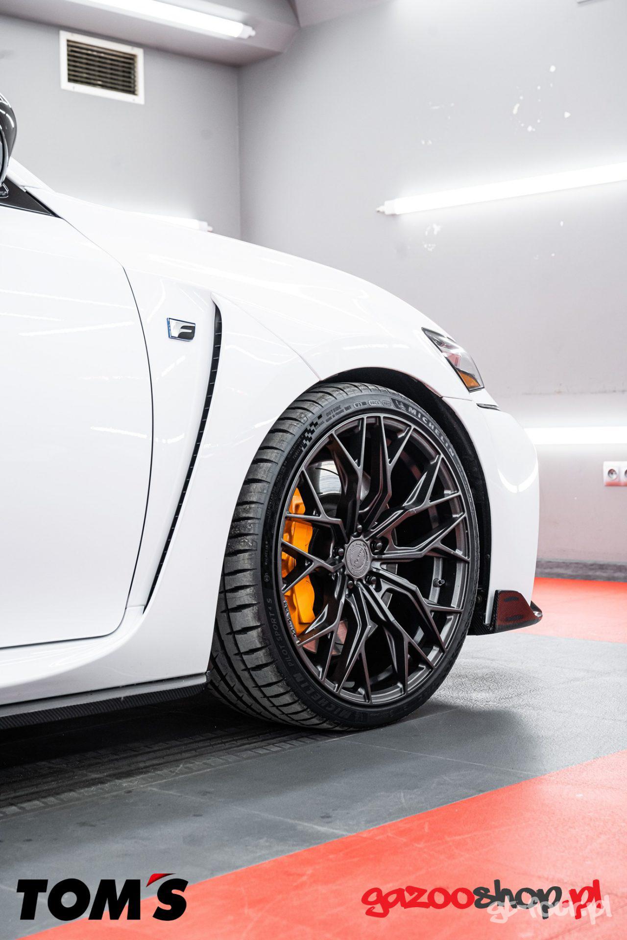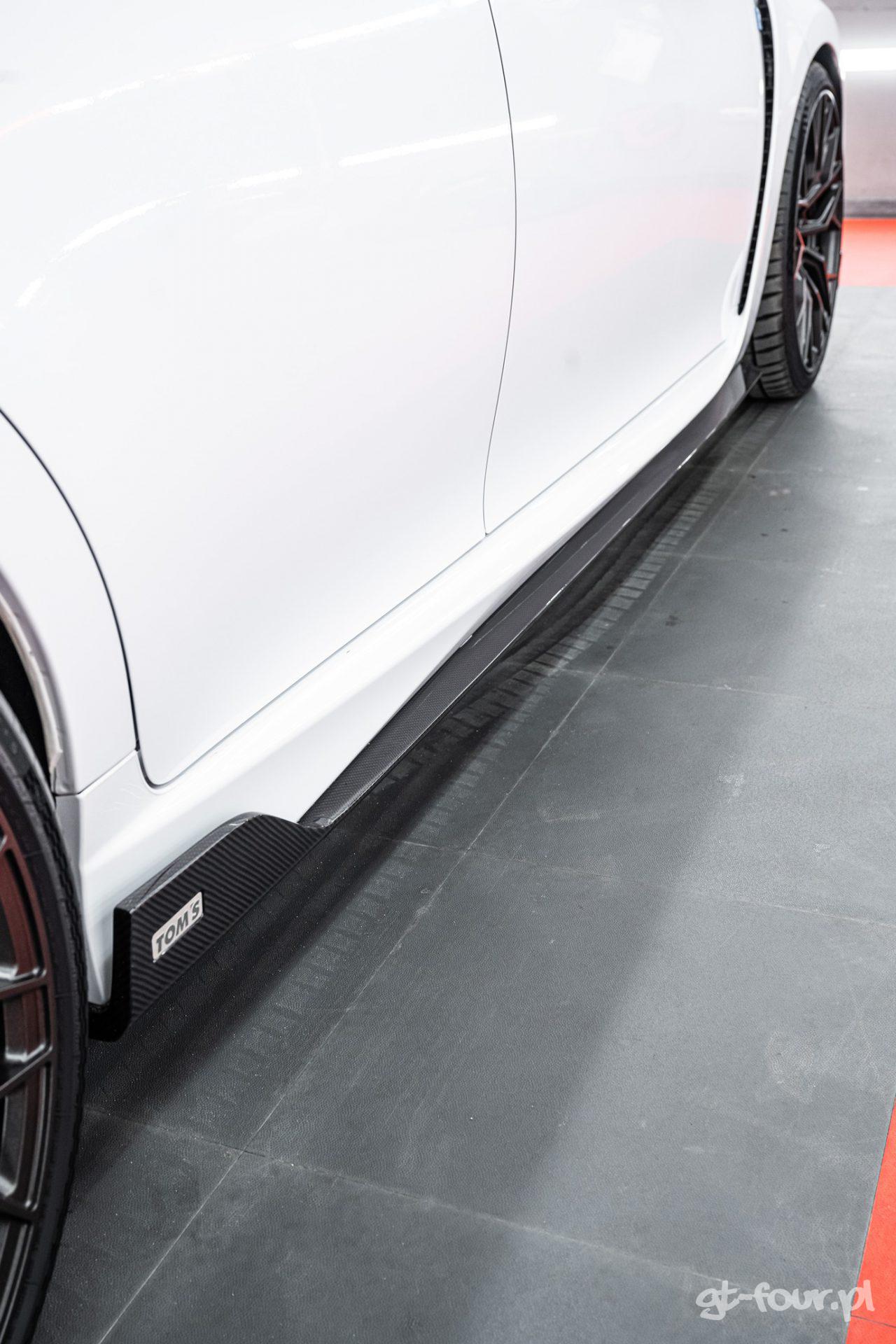 Ale wracając do Lexusa GSF – to auto jest z nami od nowości, pochodzi z 2018 roku i ma ok. 50 tys. km przebiegu. Samochód jest niesamowity, bardzo wygodny, nadal szybki i wygląda całkiem świeżo – a minęło już 8 lat od kiedy go kupiliśmy. Ale nasze auta jak wiecie nie pozostają długo z seryjnym wyglądem i albo mają montowane pakiety z TRD, TTE… albo TOM’s. Dlaczego? Dlatego, że te produkty są najwyższej jakości i ich wykonanie i montaż to czyste piękno!
