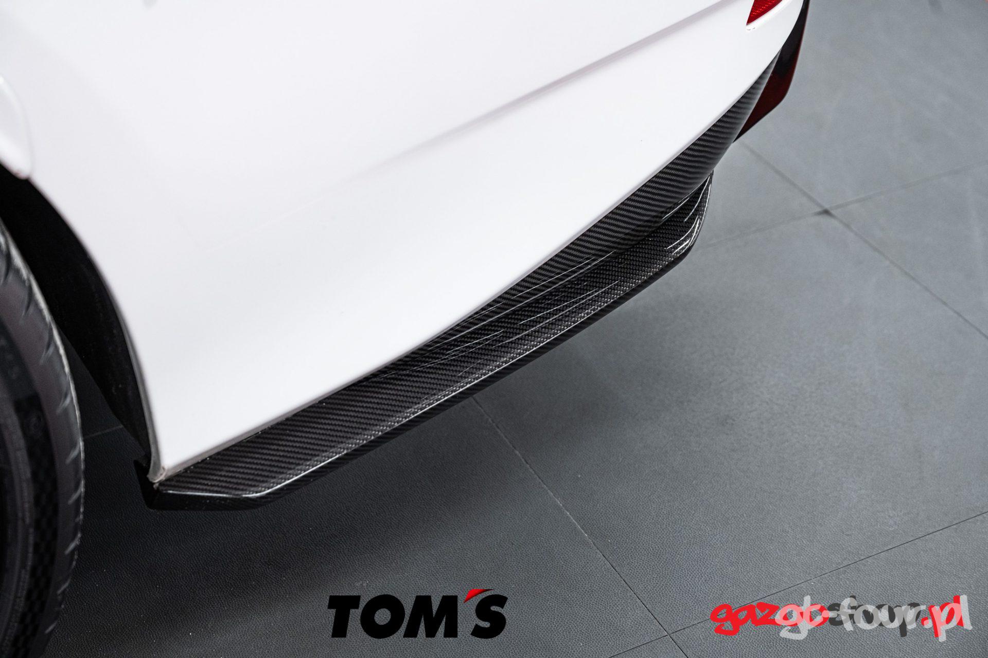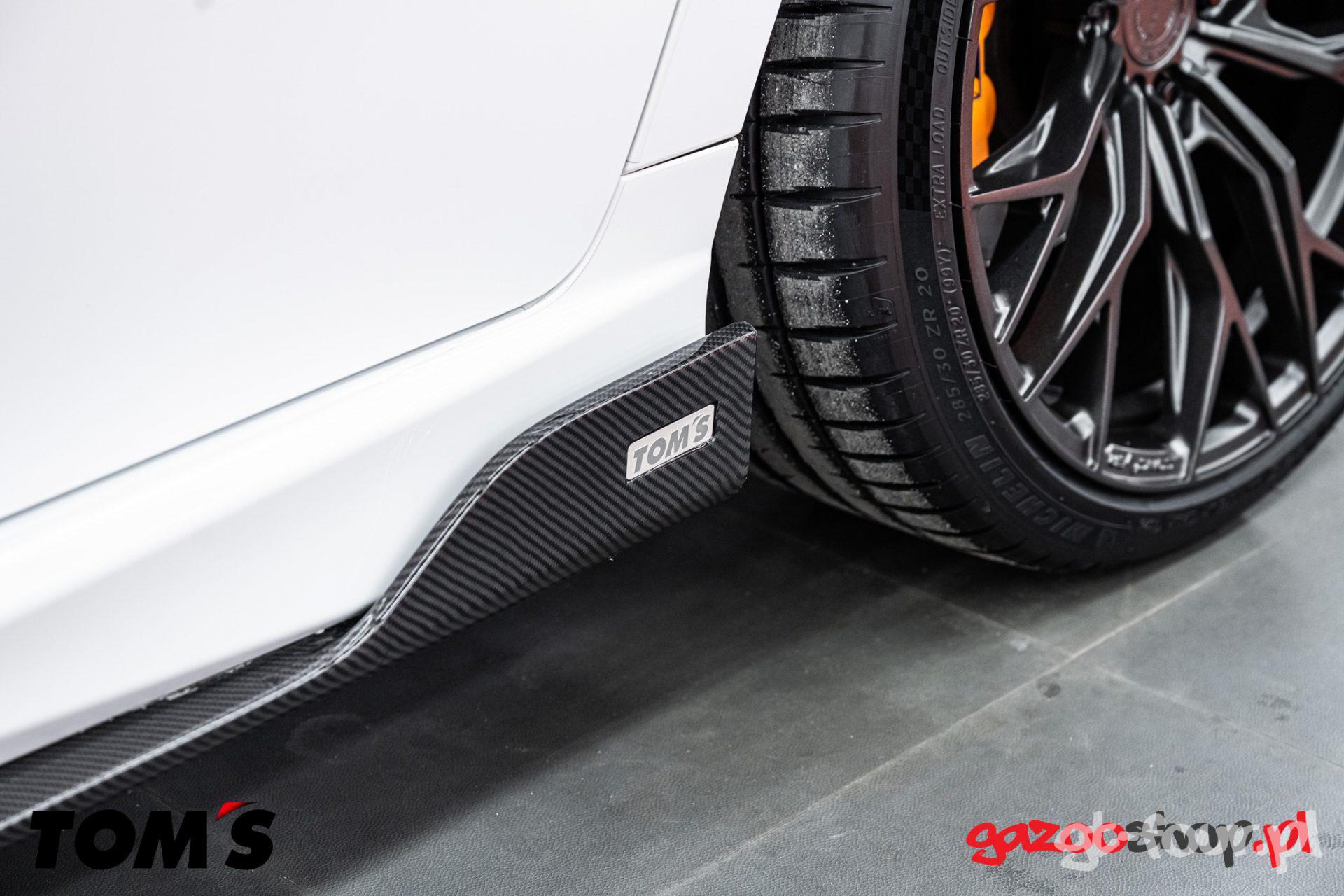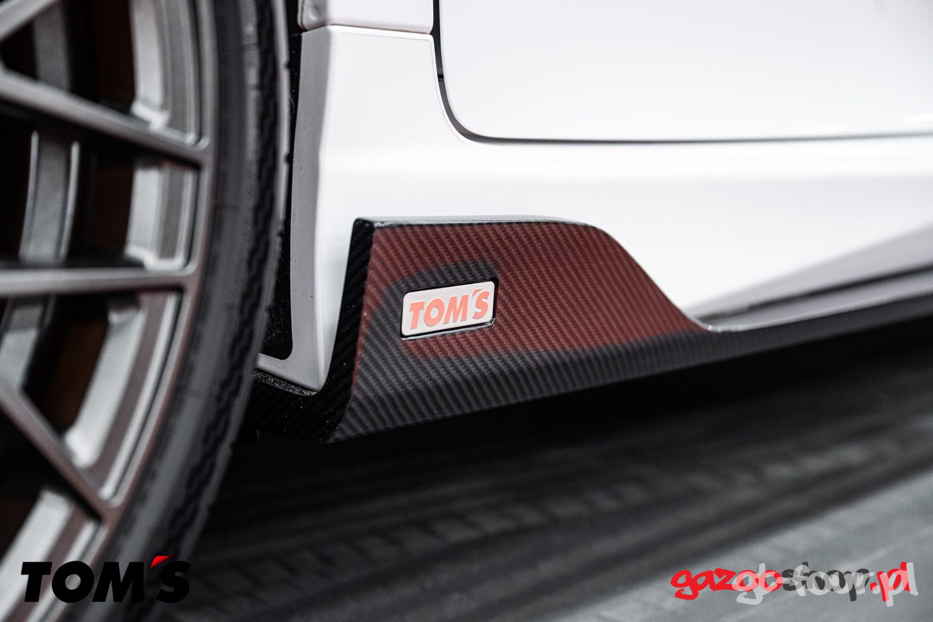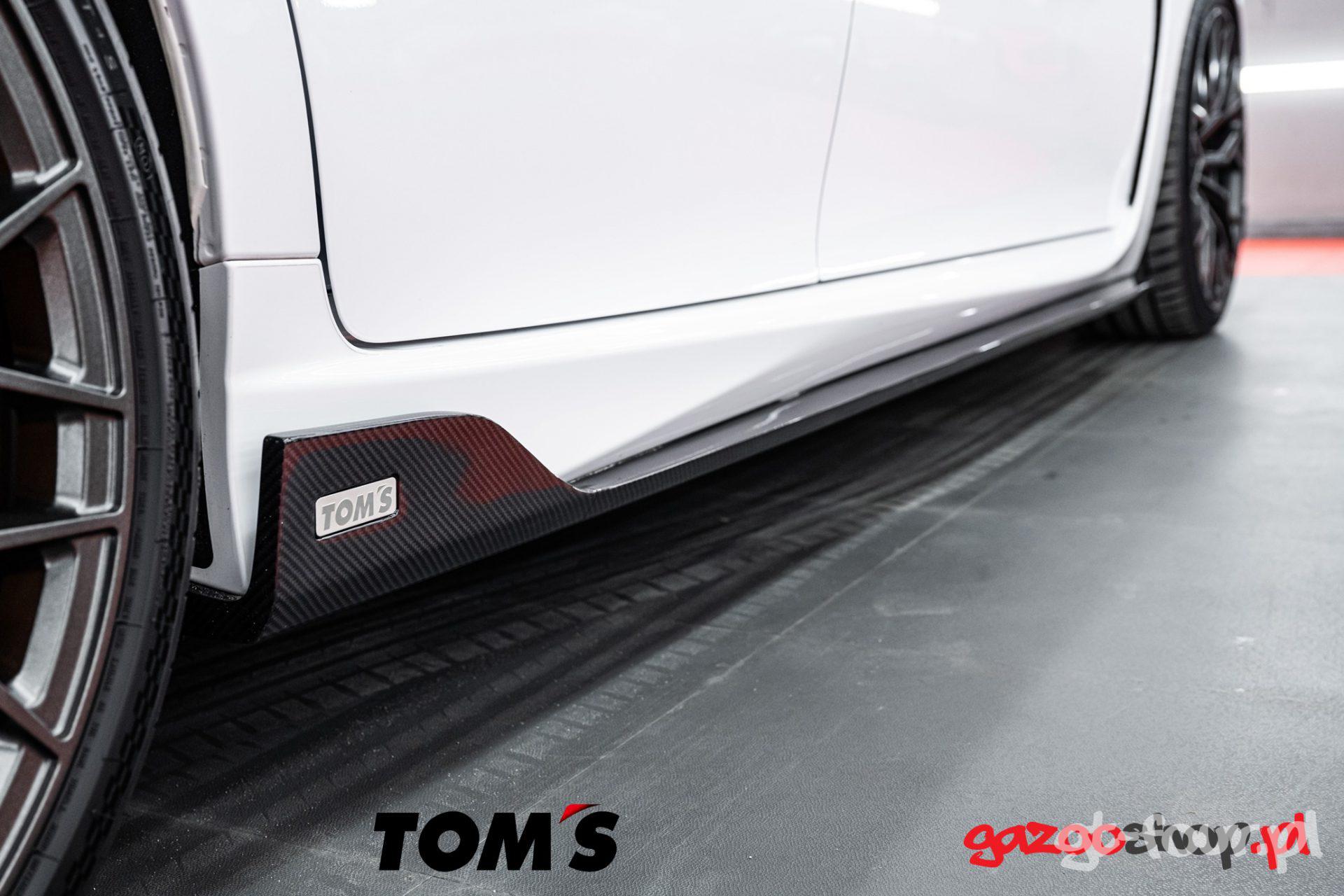 Dzięki naszej współpracy z firmą TOM”s (od jakiegoś czasu jesteśmy ich dystrybutorem w Europie), mogliśmy zamówić cały zestaw i po kilku tygodniach zamontować go w naszym aucie. Przede wszystkim jak już wspominałem wcześniej – jakoś wykonania produktów TOM’s jest obłędna! Spasowanie wszystkich elementów do oryginalnych zderzaków czy progów jest perfekcyjna – nic nie odstaje, wszystko pięknie przylega do krawędzi. Montaż również jest przyjemny, ponieważ dostarczone instrukcje są bardzo czytelne i nasi technicy nie mieli abslotuenie żadnych problemów przy montażu. Na uwagę zasługuje również pakowanie produktów TOM’s przez ich fabrykę – japońska doskonałość, która idealnie zabezpiecza towar przed uszkodzeniem w transporcie – Brawo TOM’s!