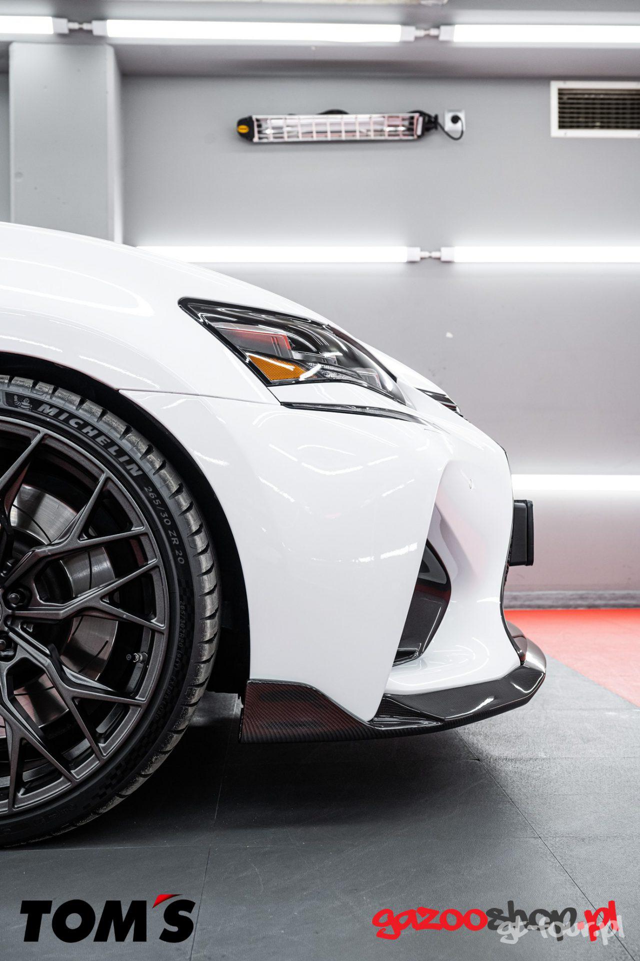 As you may remember, our collection includes several truly cool Lexuses with V8 engines – we showcased them at the opening of the Lexus Kielce showroom >> here <<. In these photos, you’ll find, among others, the Lexus ISF and GSF, which still looked quite normal (stock) back then. The ISF has already undergone its transformation thanks to the TOM’s package, so now it’s time for the GSF model… And here, too, we decided to install the full package from the Japanese Toyota and Lexus tuner TOM’s. As a fun fact, during my recent visit to the Tokyo Auto Salon, I had the opportunity to meet the founder and owner of TOM’s in person and chat with him… WOW! That was truly incredible, meeting such a legend. But getting back to the Lexus GSF – this car has been with us since new, was built in 2018, and has approximately 50,000 km on the clock. The car is amazing, very comfortable, still fast, and looks brand new – and it’s been eight years since we bought it. But as you know, our cars don’t stay stock for long, and they either have TRD, TTE, or TOM’s packages installed. Why? Because these products are of the highest quality, and their workmanship and installation are pure beauty! TOM’s for the Lexus GSF has a truly extensive range of products, including: