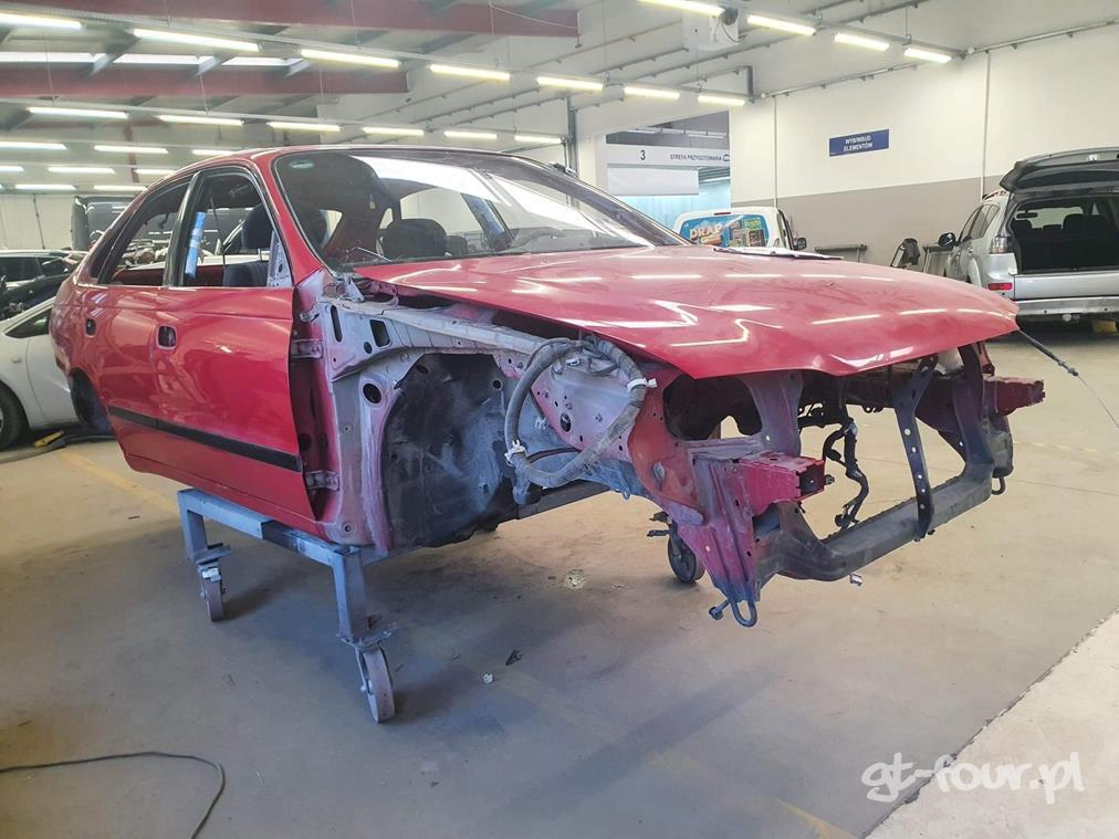 Toyota Carina E GT-i wciąż znajduje się na dziale blacharskim, gdzie przygotowujemy je do lakierowania. Po demontaży całego osprzętu, podwozie