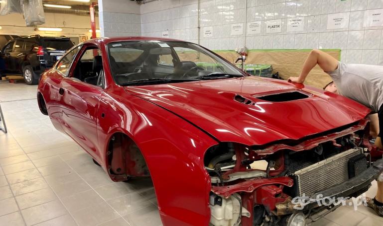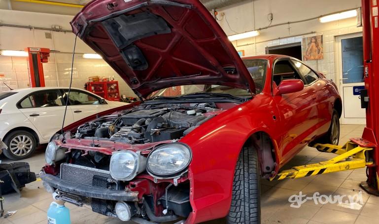 Prace związane z odbudową Celicy ST205 idą na kilku frontach. Blacharnia przygotowuje nadwozie dla działu lakierniczego. Serwis mechaniczny przygotowuje części