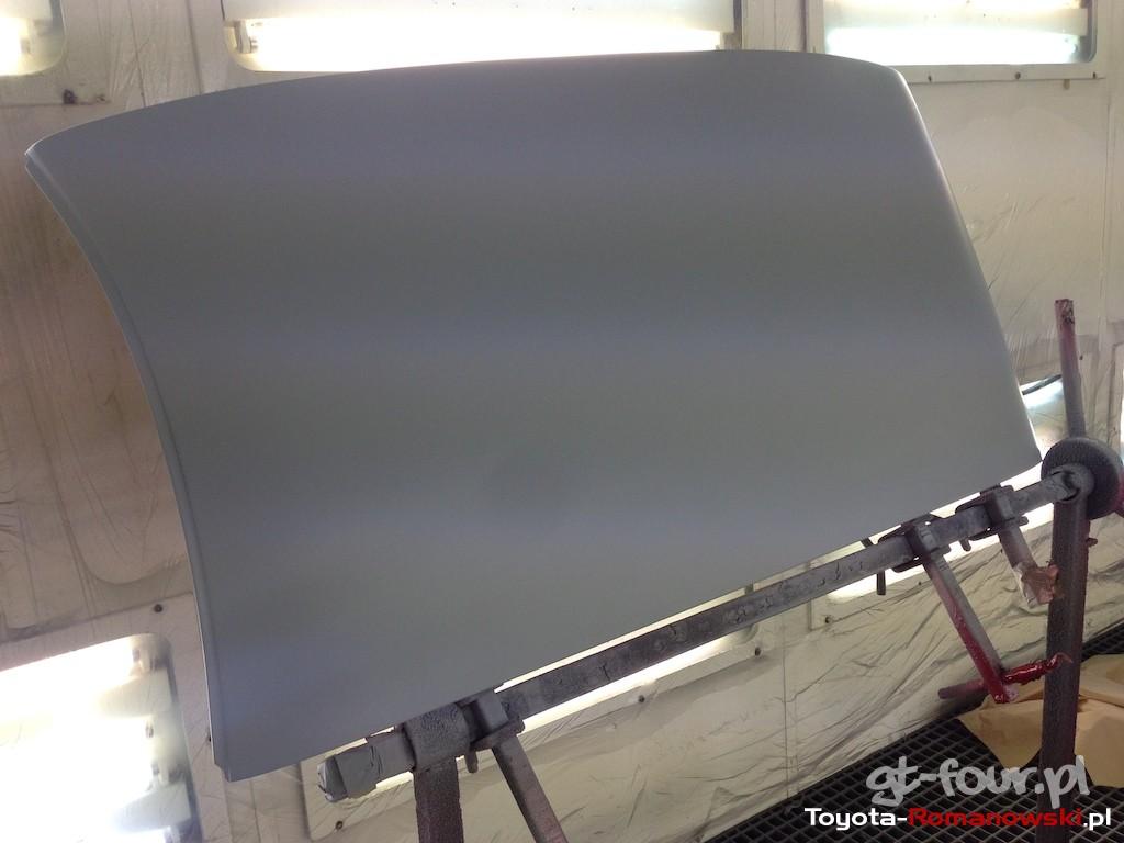 Na lakierni w Toyota Romanowski Radom praca wre. Kolejne elementy zostały już pokryte pierwszą warstwą i następnie znów zostaną przeszlifowane, aż powierzchnia będzie idealnie równa. Już nie możemy doczekać się położenia finalnej warstwy lakieru i klaru.
